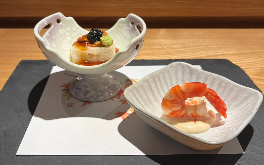 銀座幸の羽の「鮨し懐石」は、鮨し、日本料理、フレンチを1つのコースで愉しめる、銀座幸の羽にしかない唯一無二のコースです。当店自慢のお料理の数々を五感でお愉しみください。
